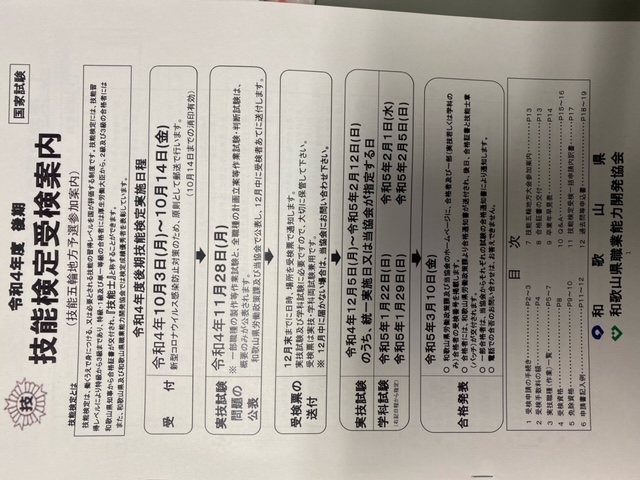 令和4年度後期、技能検定受験案内が届きました。 受験をお考えの組合員さま(従業員)は、組合事務局までご連絡お願いいたします。 ![]() |